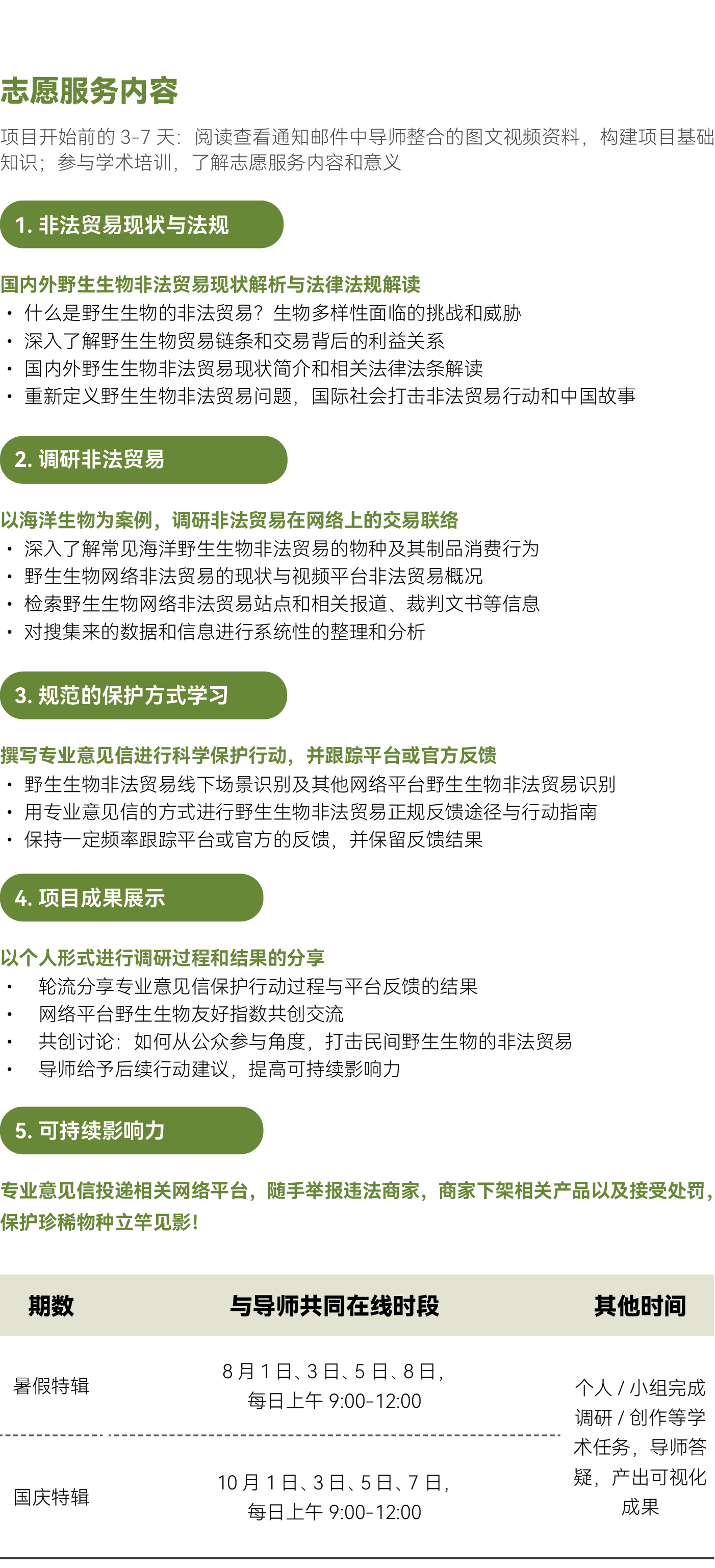 野生动植物是人类赖以生存的重要资源,但随着经济的发展,社会对其需求急剧增长,非法贸易现象也与日俱增。有效的打击非法贸易是保护地球资源的重要手段。志愿者将从非法贸易数据调研开始,了解其现状并贡献数据,通过专业意见信向相关部门反馈,打击非法贸易的网络链条,云守护野生动植物!导师团队