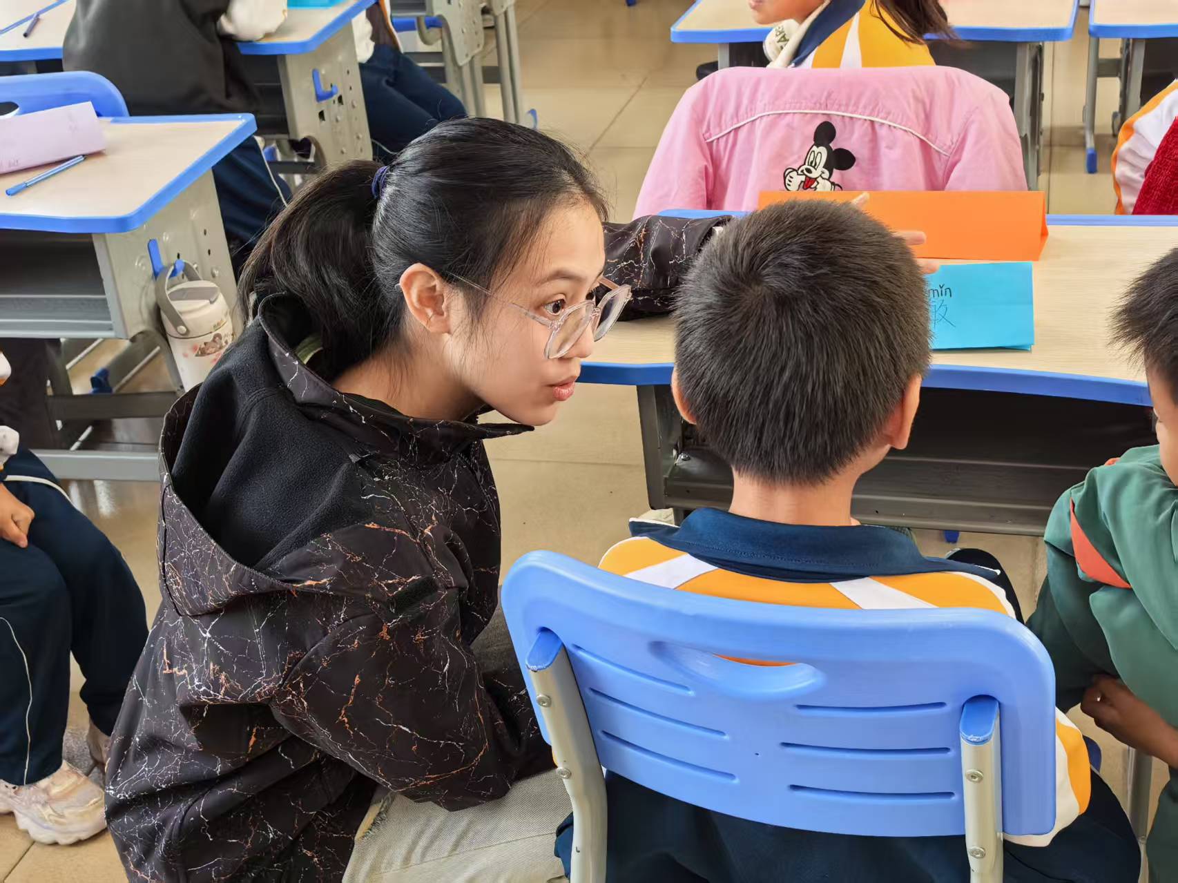 离别前,我们都十分舍不得对方,许多孩子们留下了我们的联系方式,并且一直追问着我们会不会回去看他们。最让我震惊的是那位一开始连话都不敢说的小男生,戳了戳我的背,手里拿着一个小徽章说要送给我,老师与学生之间的双向奔赴让我更深刻地感受到了教育的意义。看着孩子们最终能够真正的享受课堂,融入课堂我感到非常欣慰。这次的教学经历更坚定了我想成为一位老师去帮助别人的决心。