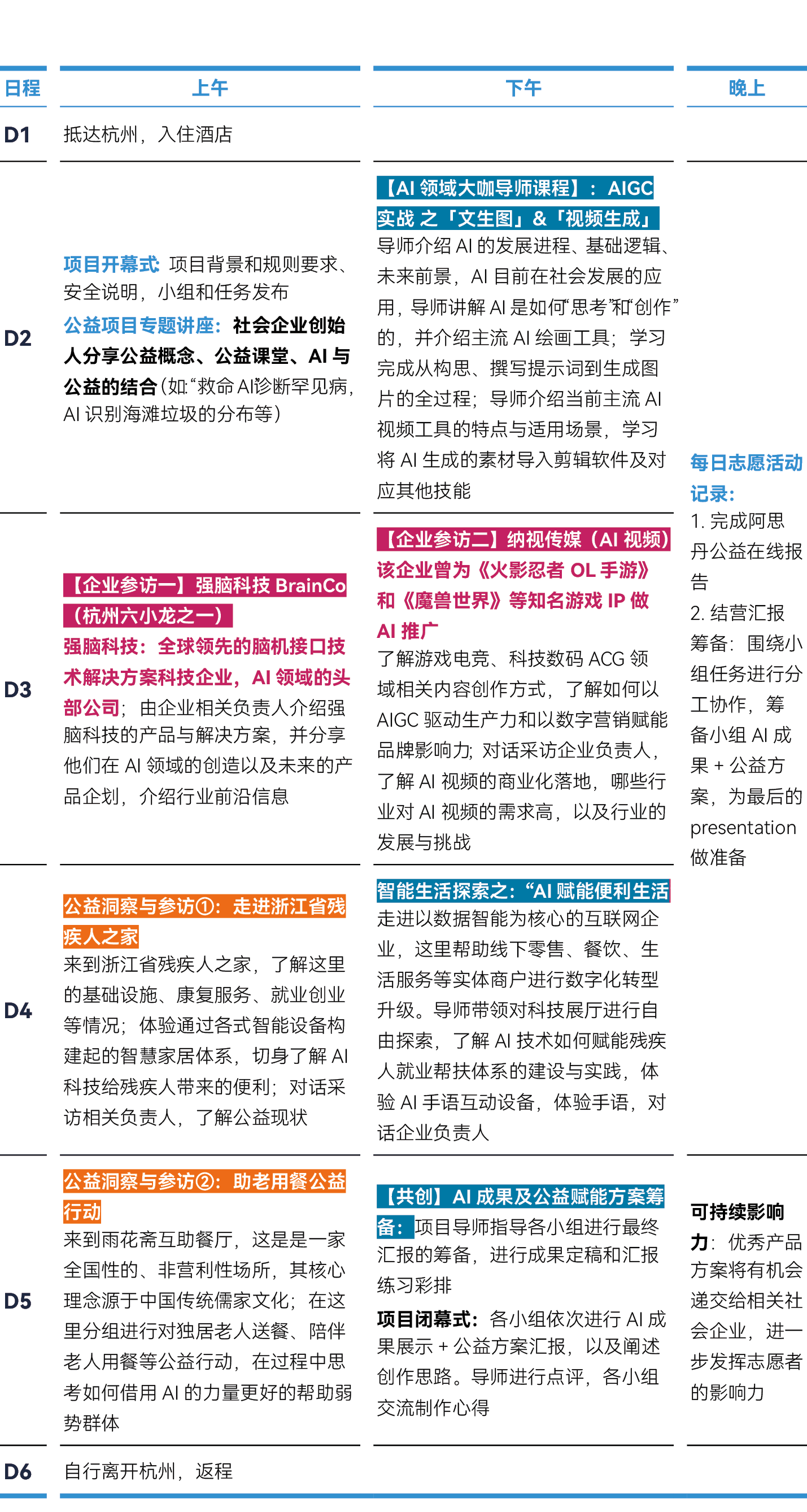 参访强脑科技企业、参访浙江残疾人之家、杭州城市探索之公益洞察