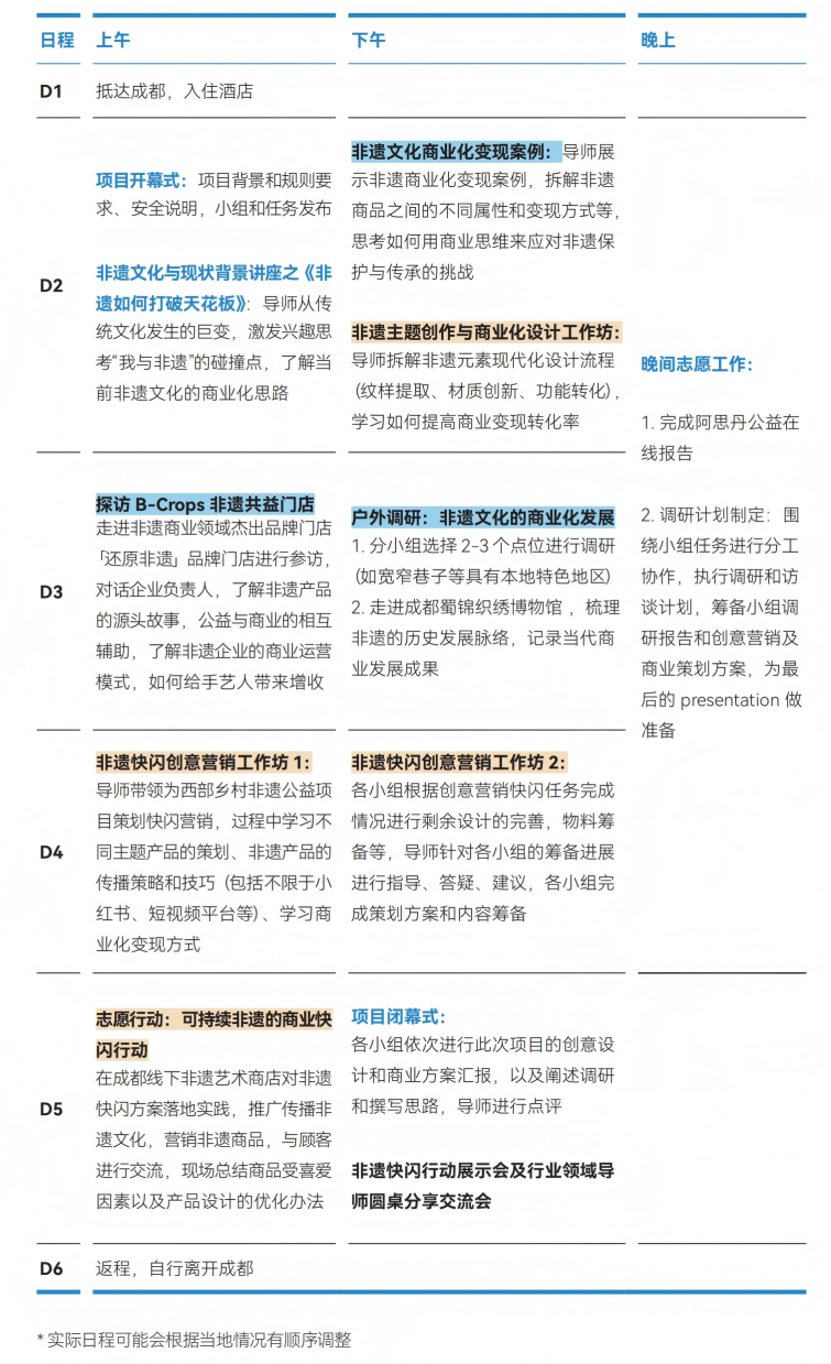 阿思丹联合中国西部非遗支持单位发起项目,带领志愿者探索苗族刺绣、佤族织锦等非遗技艺的创新路径。青年将深入了解非遗传承面临的传播与商业化挑战,学习品牌营销与创意设计,并策划落地非遗主题商业快闪活动,以年轻力量推动传统文化焕发新生。
